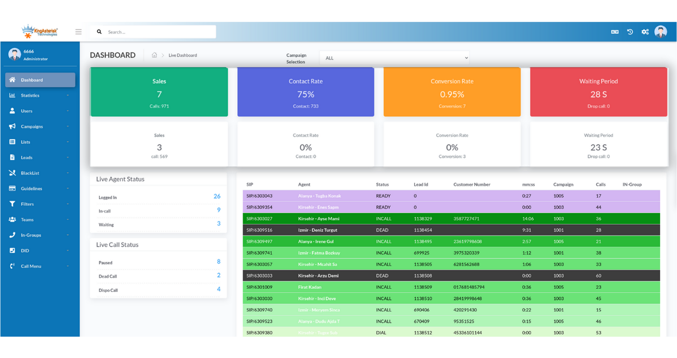 Supervisors can track agent activity, live calls, and campaign stats instantly. This ensures higher accountability and performance transparency.